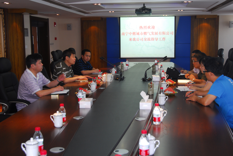 6月20日上午,南寧中國燃?xì)獍l(fā)展有限公司公司副總經(jīng)理曹陽帶隊來到中慶燃?xì)夤具M行考察學(xué)習(xí)。公司副總經(jīng)理賈兆公和公司相關(guān)部門領(lǐng)導(dǎo)劉國華、梁海濱出席了會議。會議在公司十一樓會議室舉行,會上公司營業(yè)部部長劉國華介紹了公司營業(yè)管理的相關(guān)細(xì)節(jié),運行部副部長梁海濱介紹了公司生產(chǎn)運營的具體情況和做法,雙方進行了親切友好的交流。會后,南寧燃?xì)獾目腿诉€參觀了公司調(diào)度中心、營業(yè)信息中心。