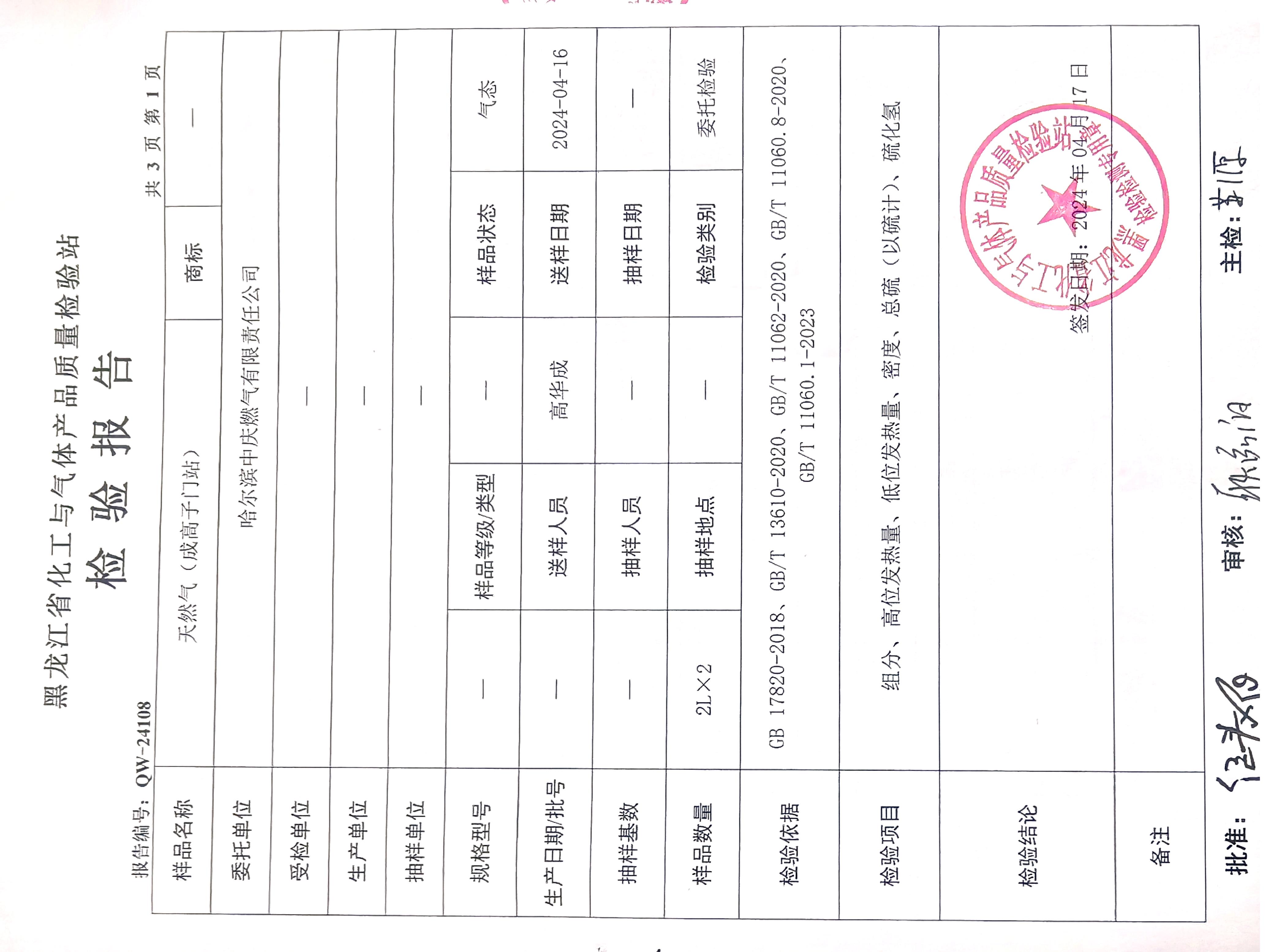 燃?xì)鈾z驗(yàn)報(bào)告2024年4月