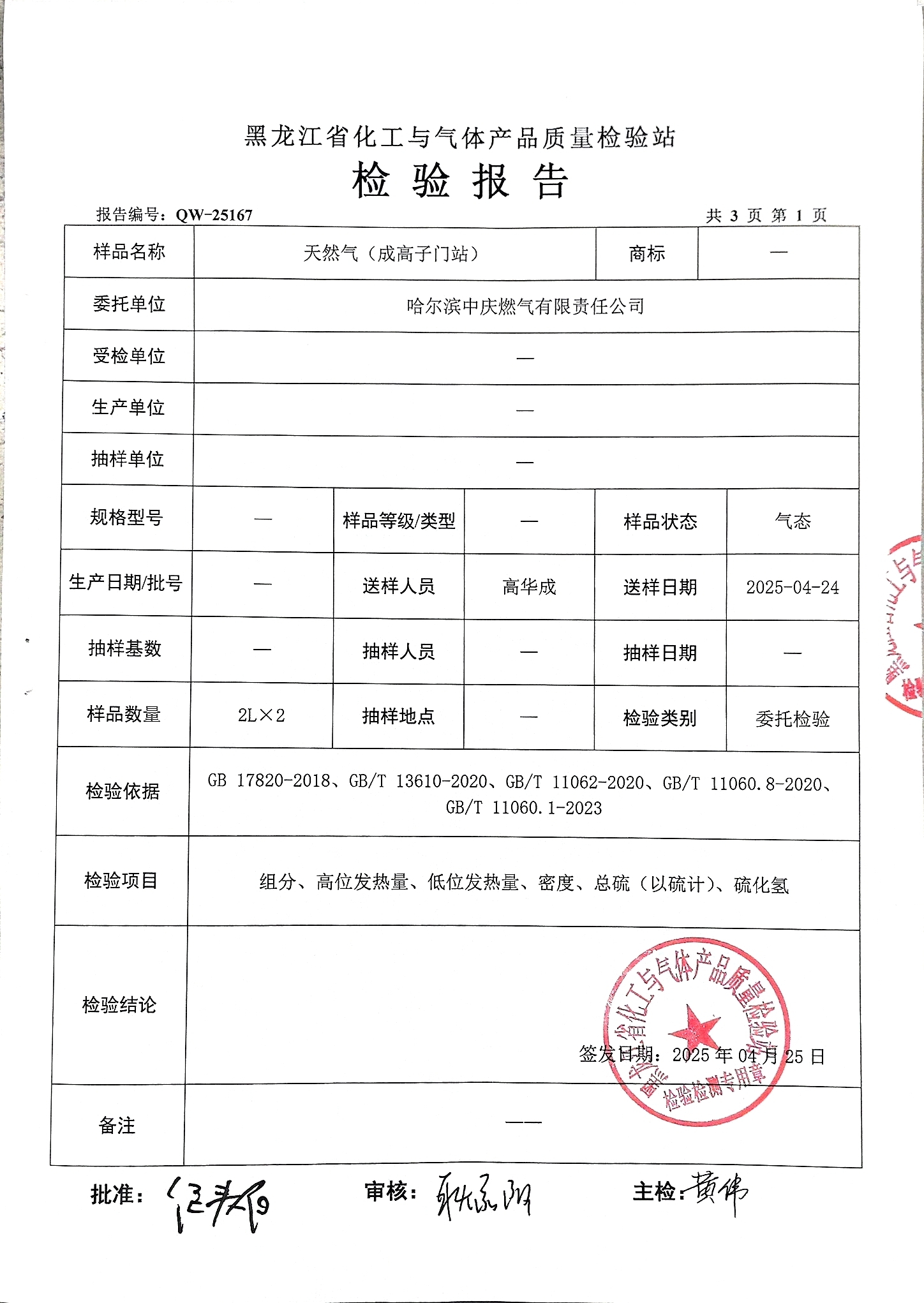 燃?xì)鈾z驗(yàn)報(bào)告2025年4月