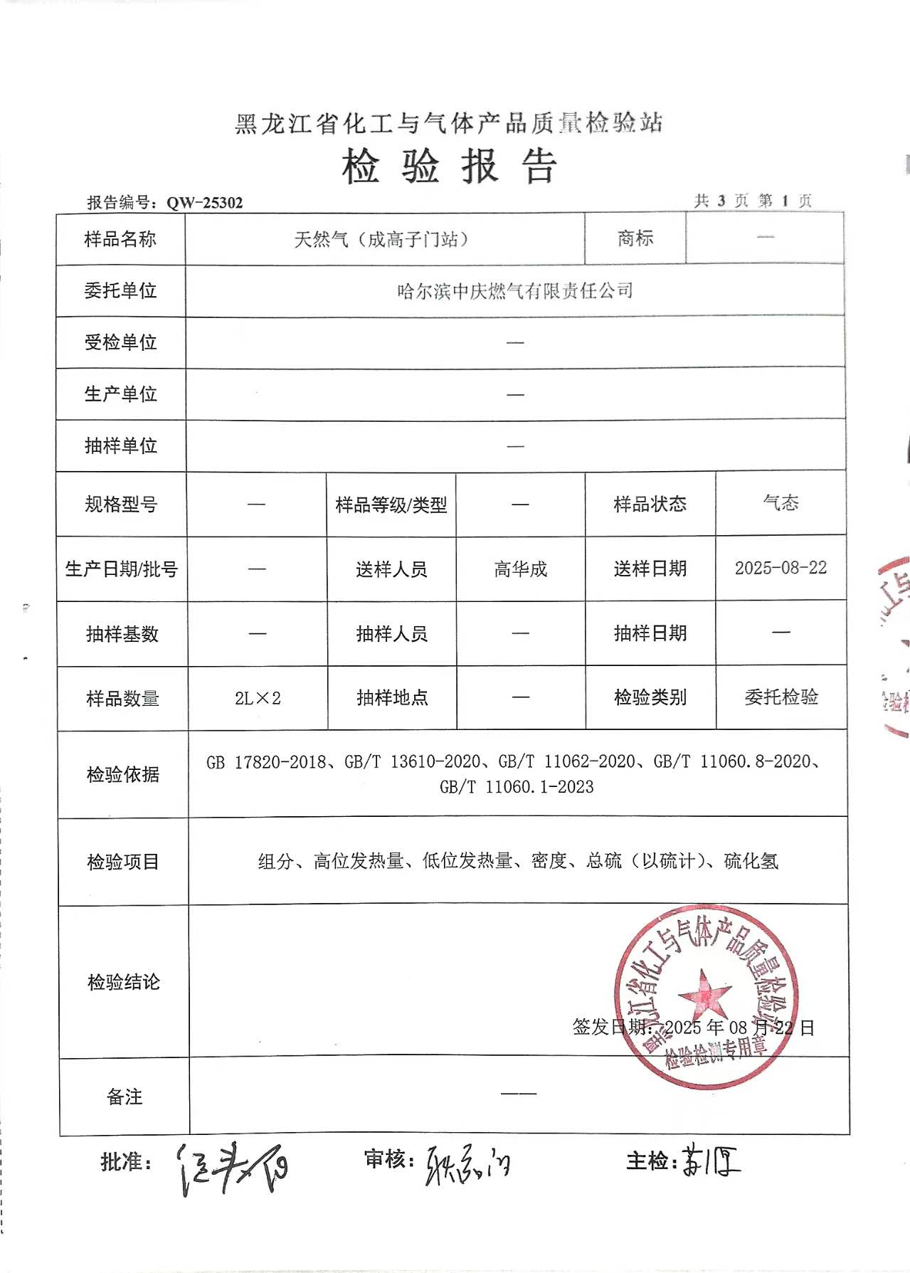 燃?xì)鈾z驗(yàn)報(bào)告2025年9月