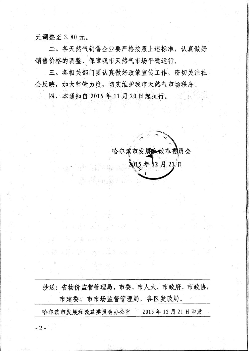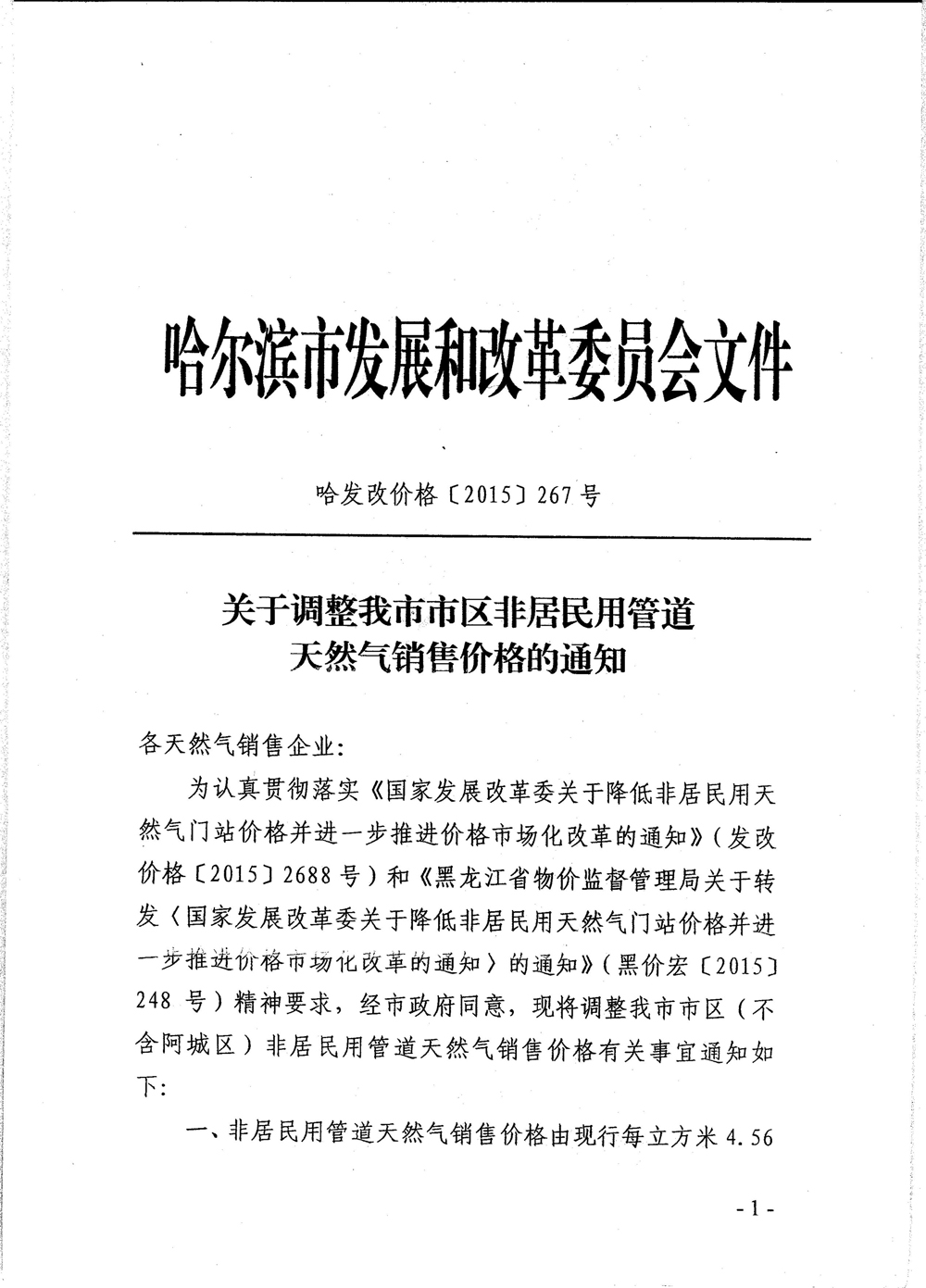 關(guān)于調(diào)整我市市區(qū)非居民用管道天然氣銷售價(jià)格的通知 [2016 12 15]