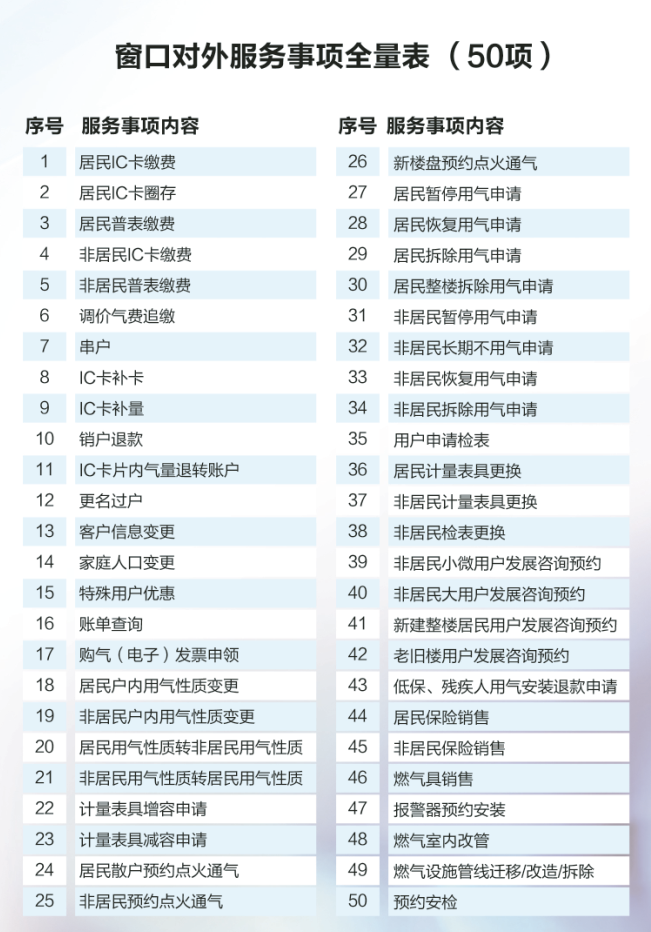 “辦事不求人”窗口對(duì)外服務(wù)全量表(50項(xiàng))