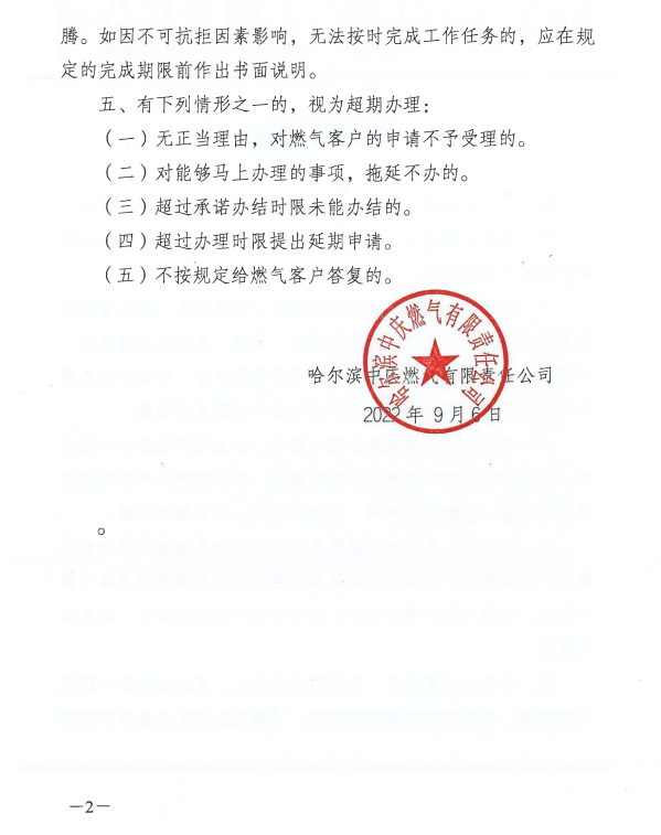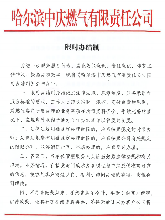 哈爾濱中慶燃氣有限責(zé)任公司限時辦結(jié)制