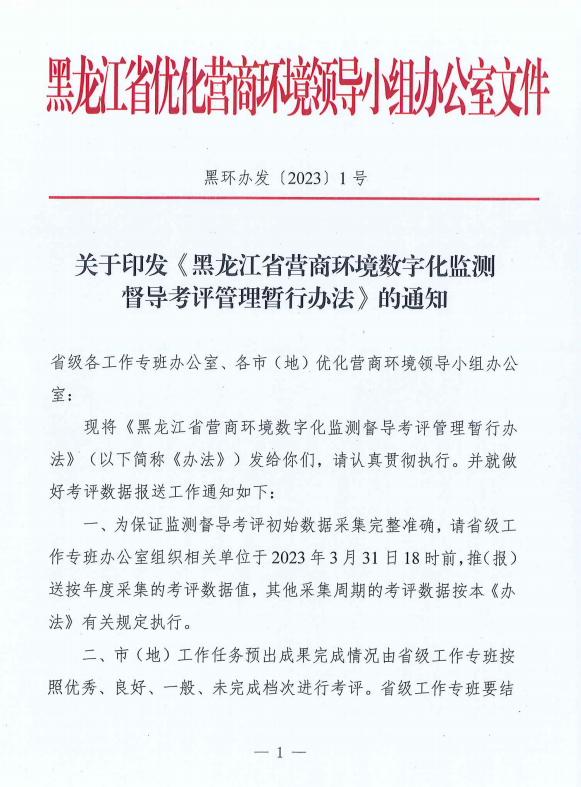 關(guān)于印發(fā)《黑龍江省營(yíng)商環(huán)境數(shù)字化監(jiān)測(cè)督導(dǎo)考評(píng)管理暫行辦法》的通知